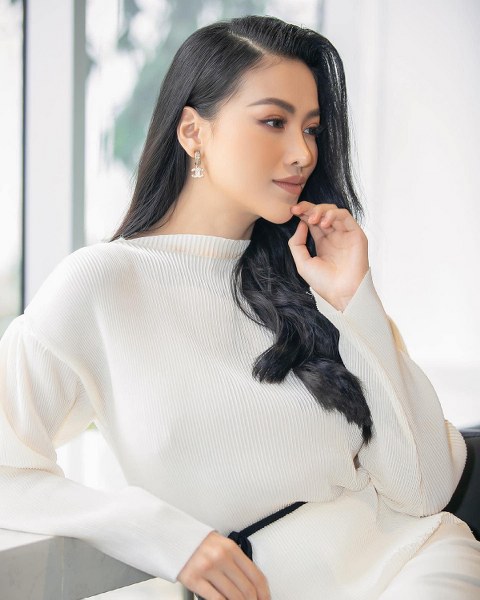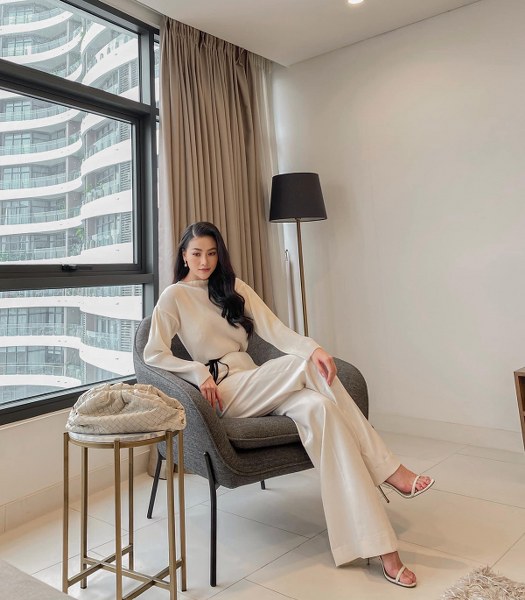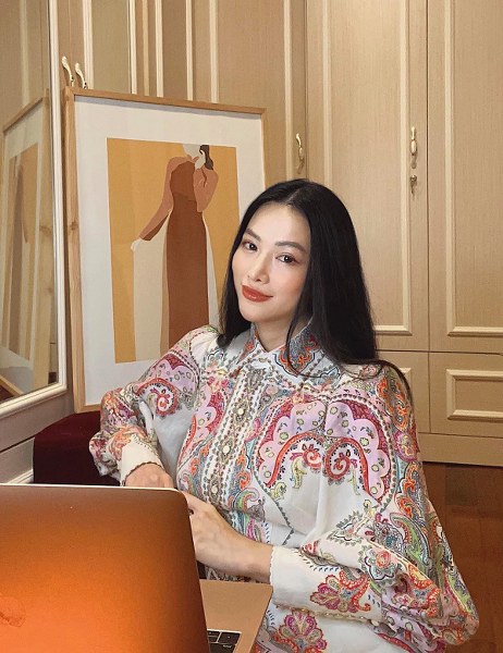 Trang phục làm việc online của hoa hậu Phương Khánh không quá cầu kỳ nhưng luôn thể hiện được sự chỉn chu, chuyên nghiệp.