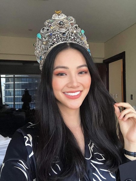 Hình ảnh Phương Khánh sau đêm chung kết Miss Earth 2018 với vương miện trên đầu.
