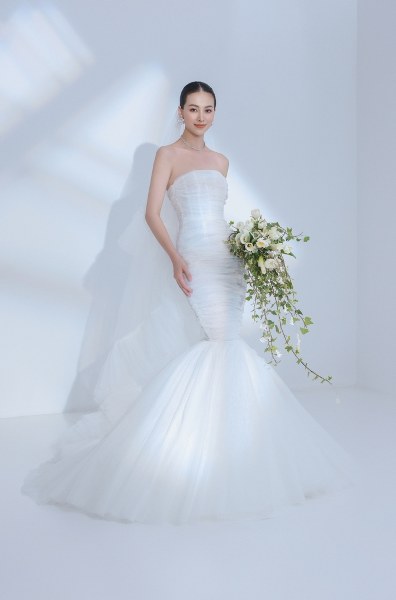 Phương Khánh tạo dáng với đầm cưới cúp ngực, dáng đuôi cá.