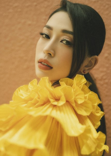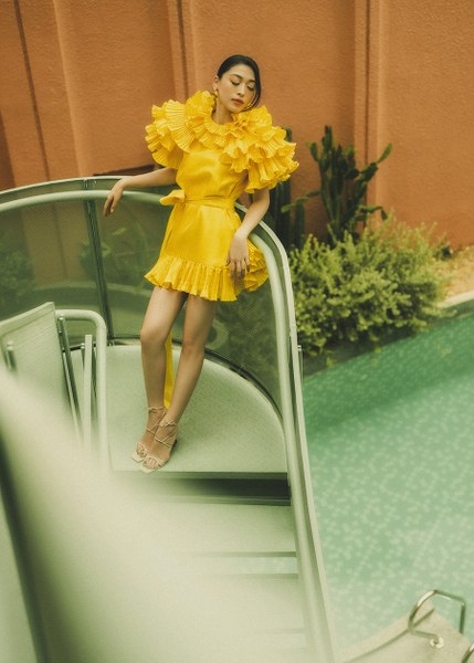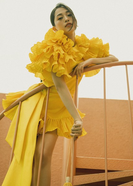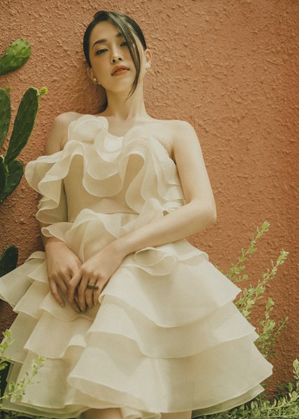 Á hậu Bùi Phương Nga khoe vẻ điệu đà với những thiết kế bèo nhún của Lê Thanh Hoà.