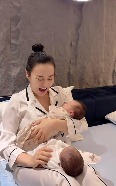 Phương Oanh chia sẻ: "Cả nguồn sống bỗng chốc thu bé lại vừa bằng hai cục sữa". Các bức ảnh liên quan đến cặp song sinh cũng 'hot' không kém nữ diễn viên, luôn thu hút lượng like 'khủng' trên trang cá nhân gần 700 nghìn người theo dõi của Phương Oanh.