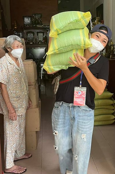 Hình ảnh mộc mạc của Phương Thanh khi đi phát lương thực cho bà con khu vực phong toả ở TP HCM nhận được nhiều cảm tình từ khán giả.