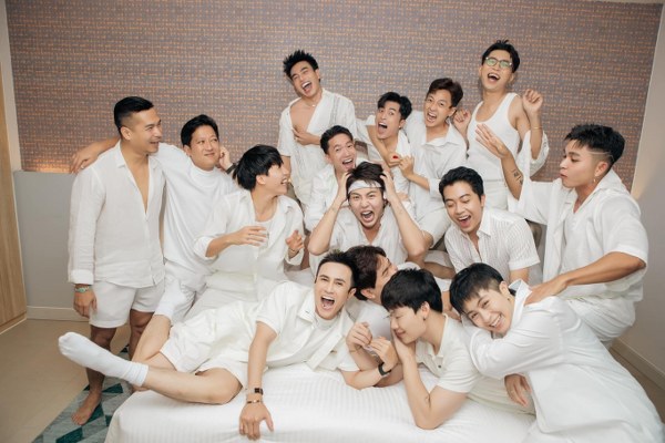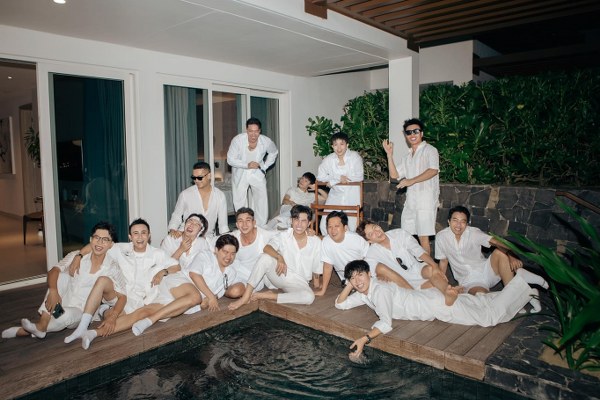 Dàn sao nam là bạn thân chú rể, lên đồ trắng dự tiệc gồm: Trường Giang, Lê Dương Bảo Lâm, Ngô Kiến Huy, Jun Phạm, Huỳnh Lập, Trương Thế Vinh, Anh Tú, S.T Sơn Thạch, Minh Dự, Cris Phan, Duy Khánh, Hồng Tú, Quang Trung...