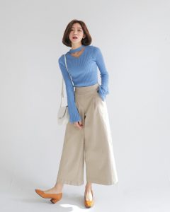 Bất cứ cô nàng nào, dù thân hình mũm mĩm hay tăm que đều sở hữu ít nhất một chiếc quần lửng ống rộng.Đặc điểm dễ nhận thấy nhất của những chiếc quần này là chiều dài qua đầu gối, ống quần rộng giúp thoải mái vận động.