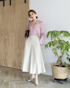 Cũng mang những ưu điểm của quần culottes, chiếc quần loe giống váy này phù hợp với phong cách của các nàng công sở, từ trẻ trung khi kết hợp cùng áo phông, lịch sự khi kết hợp cùng sơ mi hay trang nhã với các kiểu áo blouse nữ tính. Chỉ cần một thiết kế culottes bạn chẳng bao giờ phải bận tâm về vẻ ngoài của mình khi tới sở làm.