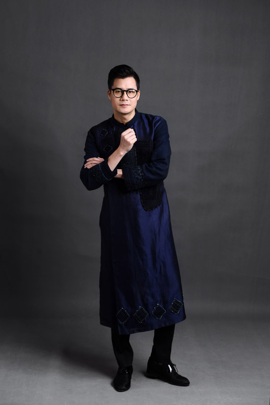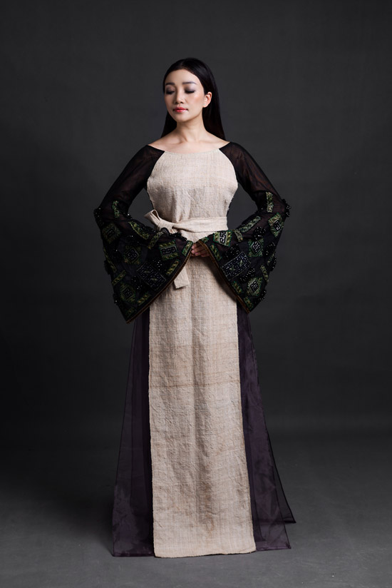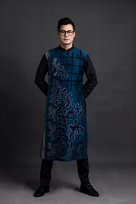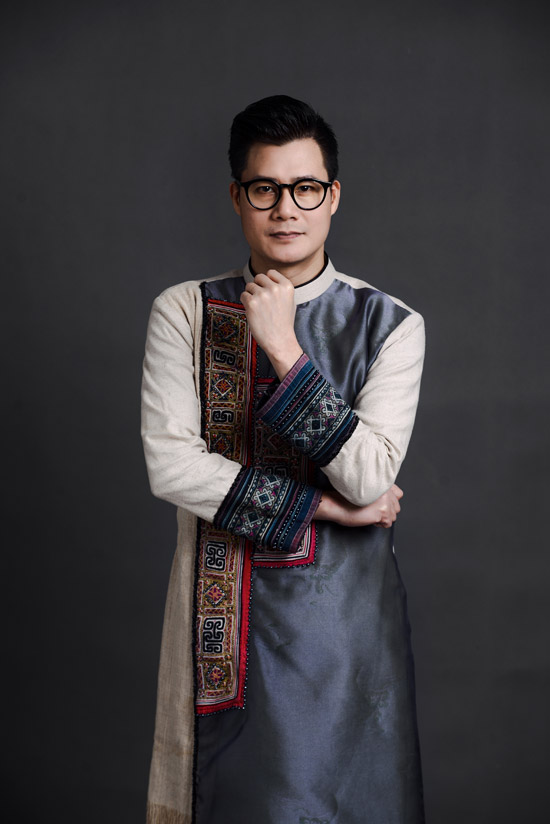 Nam ca sĩ bất ngờ nhận lời làm mẫu cho bộ sưu tập áo dài chất liệu sợi lanh của nhà thiết kế Vũ Việt Hà.