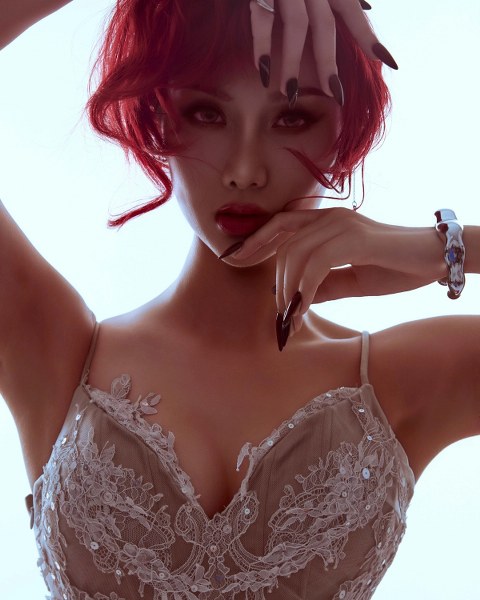Người đẹp mặc đầm xuyên thấu của nhà thiết kế Đỗ Long kết hợp tóc đỏ.
