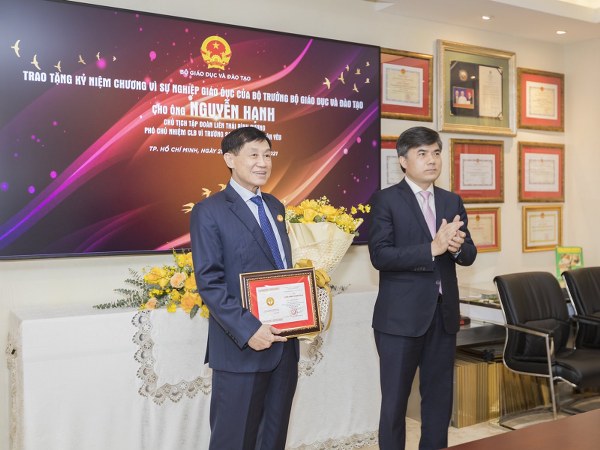Ông Johnathan Hạnh Nguyễn – Chủ tịch Tập đoàn Liên Thái Bình Dương (IPPG), Phó Chủ nhiệm CLB "Vì Hoàng Sa – Trường Sa thân yêu" nhận Kỷ niệm chương "Vì sự nghiệp giáo dục"