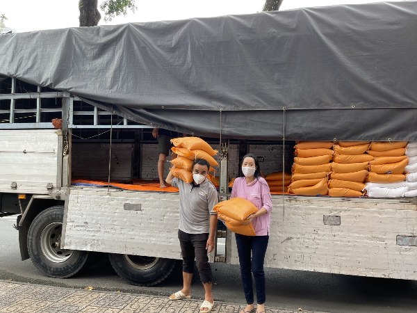 Biết Trịnh Kim Chi cùng quỹ từ thiện Chăm Lo Nghệ Sĩ giúp đỡ 40 nghệ sĩ hoàn cảnh khó khăn, bệnh tật, có những người nhiễm Covid-19 và 181 nhân viên hậu đài các sân khấu tại TP HCM, Quyền Linh đã gửi tặng cô 10 tấn gạo.