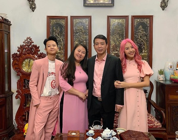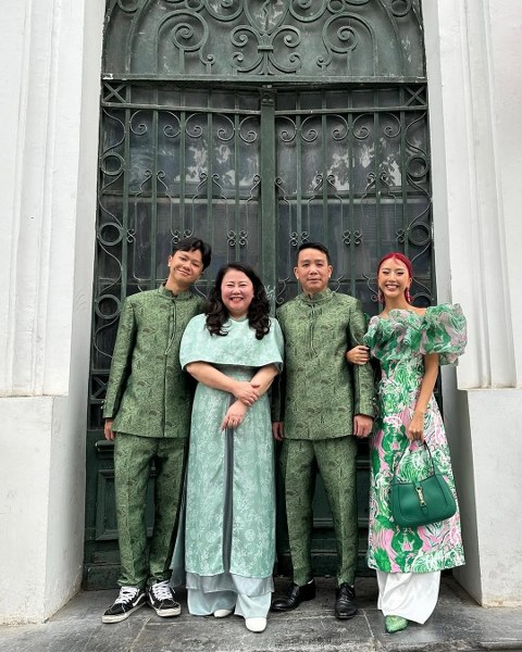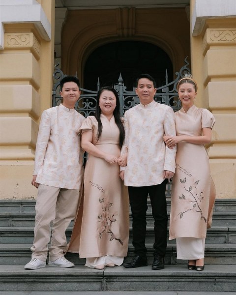 Fashionista Quỳnh Anh Shyn phối đồ cùng tông cho bố mẹ, em trai dịp Tết từ năm 2018 đến nay.