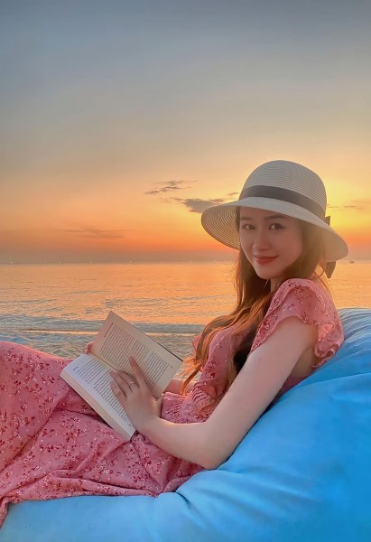 Đầm họa tiết hoa nhí kết hợp nón cói là lựa chọn của Quỳnh Anh khi du lịch biển hồi đầu năm.