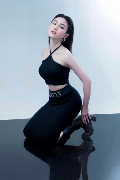 Trong ảnh, cô gây ấn tượng với chiếc váy đen ôm sát, điểm nhấn hở eo tinh tế giúp tôn đường cong, làn da mịn và bờ vai thon gọn. Lối trang điểm tông Tây với mắt khói nhẹ, môi nude kết hợp mái tóc uốn gợn sóng mang đến vẻ quyến rũ, hiện đại.