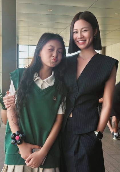 Gam xanh mang lại cảm giác tươi mát, hiện đại, trong khi đôi môi đỏ trở thành điểm nhấn nổi bật, làm tôn làn da sáng và vẻ cuốn hút tự nhiên của nữ diễn viên. Trong khi đó váy hoa 2 dây nhẹ nhàng khoe vẻ đẹp nữ tính và dịu dàng.