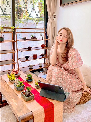 \'Cá sấu chúa\' Quỳnh Nga tránh dịch trong một căn biệt thự sang trọng, thỉnh thoảng giải khuây bằng cách trang điểm đẹp, diện đồ sexy để chụp ảnh hoặc quay Tiktok.