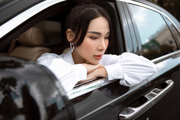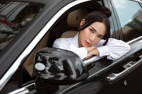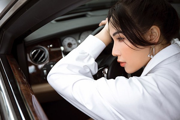 Diễn viên Quỳnh Thư mặc sang chảnh, tự lái siêu xe Rolls Royce trị giá 25 tỷ đồng đi uống cà phê, chụp ảnh ở trung tâm Sài Gòn.