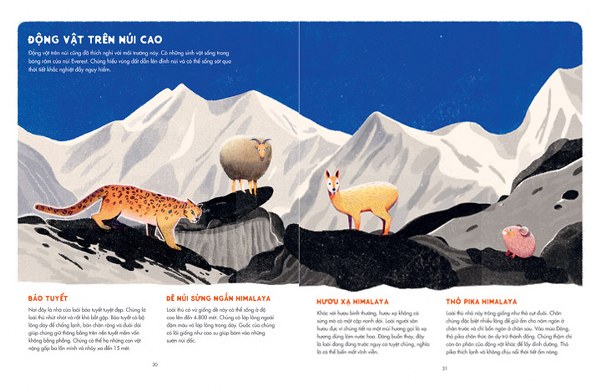 \"Lướt cùng Tí Địa Lí\" của hai tác giả trẻ Xuân Đài và Uyên Trương là hành trình khám phá nước Việt, \"Chinh phục Everest\" của Sangma Francis giúp các bạn nhỏ và phụ huynh cùng hình dung về nóc nhà thế giới, dãy núi Himalaya và đỉnh núi Everest.