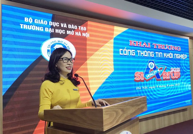 "Sau một thời gian chuẩn bị hết sức kỹ lưỡng nhưng cũng rất khẩn trương, hôm nay chúng ta chính thức ra mắt Cổng thông tin khởi nghiệp Hou. Với việc khai trương Cổng thông tin khởi nghiệp này, chúng ta đã đặt nền tảng đầu tiên cho hệ sinh thái khởi nghiệp tại Trường Đại học Mở Hà Nội. Tại đây, những chủ trương, chính sách về sáng tạo khởi nghiệp được lan toả, các tấm gương tiêu biểu trong khởi nghiệp, những kinh nghiệm về khởi nghiệp được chia sẻ. Những bài học hay, những kinh nghiệm quí giá từ thực tiễn sẽ giúp ước mơ, những ý tưởng khởi nghiệp rút ngắn thời gian đi đến hiện thực. Và cũng từ đây, cổng thông tin khởi nghiệp của nhà trường sẽ được kết nối và trở thành thành viên của mạng lưới khởi nghiệp quốc gia. Tôi đánh giá cao hiệu quả và tính lan tỏa của chuỗi hoạt động hỗ trợ sinh viên khởi nghiệp trong 2 năm gần đây, trong đó nổi bật là Cuộc thi sinh viên với ý tưởng khởi nghiệp năm 2021. Chúng ta hy vọng và tin tưởng, 8 dự án lọt vào vòng chung kết của Cuộc thi sinh viên với ý tưởng khởi nghiệp năm nay sẽ là những hạt nhân nòng cốt để lan tỏa và thắp sáng tinh thần khởi nghiệp đến đông đảo giảng viên và học viên, sinh viên của Nhà trường. Từ đó, thúc đẩy và nâng cao chất lượng của hoạt động đào tạo và nghiên cứu khoa học, góp phần phát triển Nhà trường theo hướng bền vững, tạo cơ hội phát triển và nâng cao năng lực cạnh tranh của sinh viên trong thị trường nhân lực chất lượng cao. Những ý tưởng, dự án khởi nghiệp có tiềm năng của các em sinh viên sẽ được Nhà trường tiếp tục hỗ trợ để có thể tiếp cận gần hơn với các đơn vị, doanh nghiệp và tham gia vào các sân chơi khởi nghiệp lớn hơn. Chúng ta đã có và chắc chắn sẽ có nhiều hơn những dự án mang đậm dấu ấn của sinh viên Đại học Mở Hà Nội như App Caso – Dự án đạt giải nhì toàn quốc trong Cuộc thi sinh viên với ý tưởng khởi nghiệp năm 2020 do Bộ Giáo dục và Đào tạo tổ chức", PGS.TS Nguyễn Thị Nhung – Ủy viên Ban thường vụ Đảng uỷ – Hiệu trưởng Trường ĐH Mở Hà Nội phát biểu khai mạc chương trình.