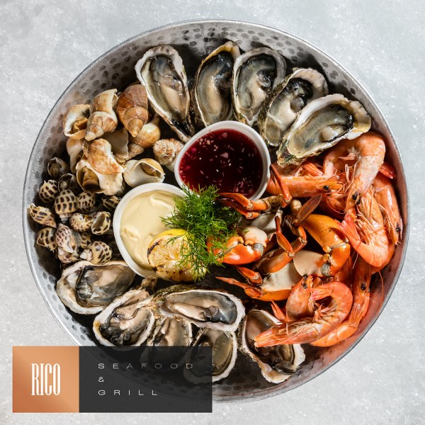 Trong không gian thoáng đãng và quyến rũ, khách hàng được chìm đắm trong những sáng tạo ẩm thực mang chút dáng dấp Âu Châu truyền thống, mà hương vị lại đầy mới mẻ, hấp dẫn. Nếu đã quen với Rico Steakhouse (56 Trần Quốc Toản), bạn sẽ nhận ngay ra phong cách của Bếp trưởng James Dogan – thức ăn cốt yếu là sự cân bằng và hương vị đậm đà. Tuy nhiên, tại Rico Seafood & Grill, James pha thêm sự hiện đại và chút chấm phá táo bạo trong các món ăn của mình.