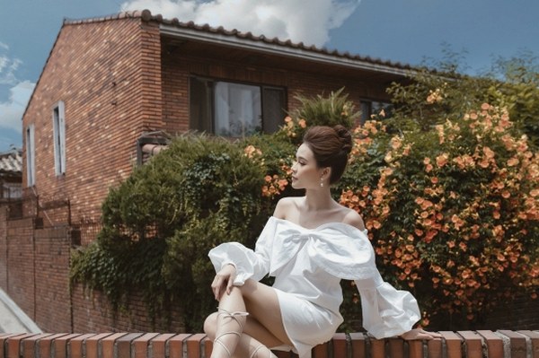 Không cầu kỳ với đầm váy xuyên thấu hay xẻ cao gợi cảm, Sam chọn phong cách đơn giản cùng sắc trắng tinh khôi