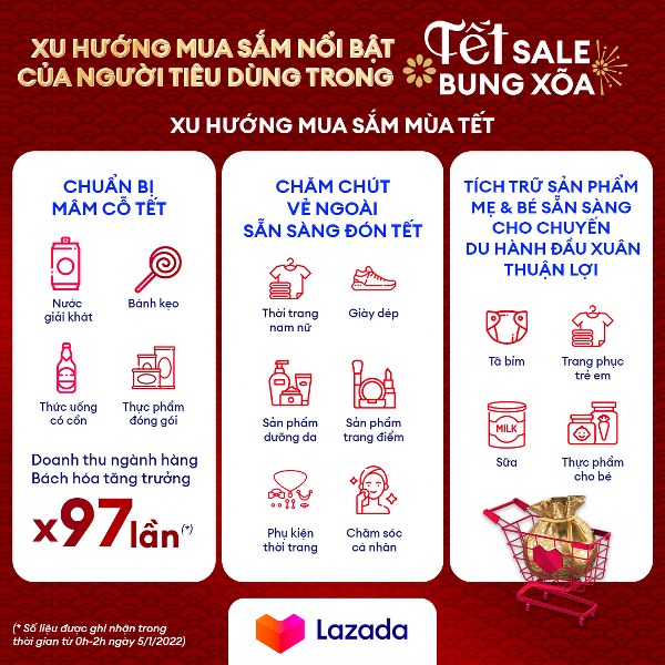 Sản phẩm Tết chiếm ưu thế trong giỏ hàng người tiêu dùng tại Lễ hội mua sắm “Tết sale bung xõa” của Lazada