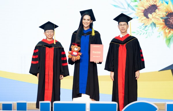 Cô đại diện cho các tân Thạc sĩ, và hơn 600 tân cử nhân và kỹ sư chia sẻ cảm nghĩ, tặng hoa thầy cô, nhận bằng tốt nghiệp. Cô cũng được vinh danh trong top học viên có thành tích học tập xuất sắc (tốt nghiệp Á khoa), đóng góp cho công tác xã hội của trường.