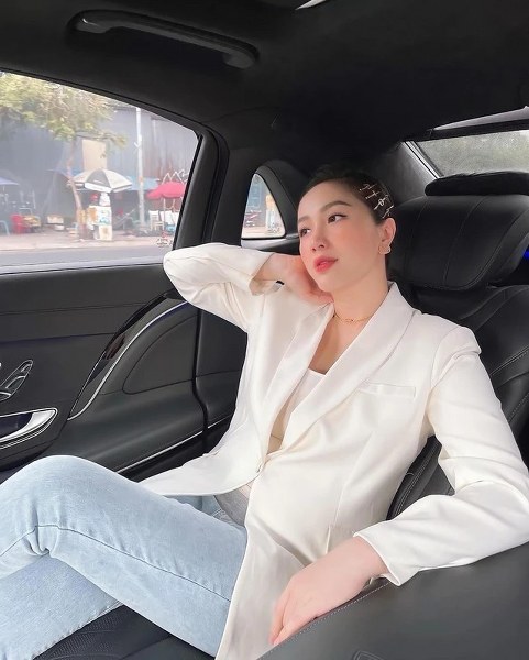 Từ sau độ tuổi 30, Bảo Thy xây dựng hình tượng là một người phụ nữ độc lập, bản lĩnh và tự tin. Ngoài cuộc sống hôn nhân viên mãn, nữ ca sĩ còn có công việc kinh doanh riêng đạt nhiều thành công. Phong cách menswear được bà mẹ một con thể hiện rất điệu đà, phá cách. Cô kết hợp blazer trắng với áo quây ngang, sơ vin cùng quần denim màu xanh nhạt và tạo điểm nhấn bằng khuyên tai, vòng cổ kim loại và kẹp tóc xinh yêu