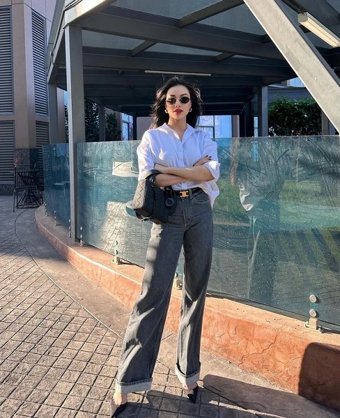 Không có những màn phối đồ rườm rà hay cầu kỳ nhưng bản phối này của người đẹp Kim Duyên vẫn toát lên dáng vẻ quyền lực và thời thượng. Với thần thái đỉnh cao, khí chất ngút ngàn, cô nàng hoàn toàn "xử đẹp" mọi thể loại trang phục, dù là chiếc sơ mi trắng, quần jeans hay đôi giày cao gót tối giản