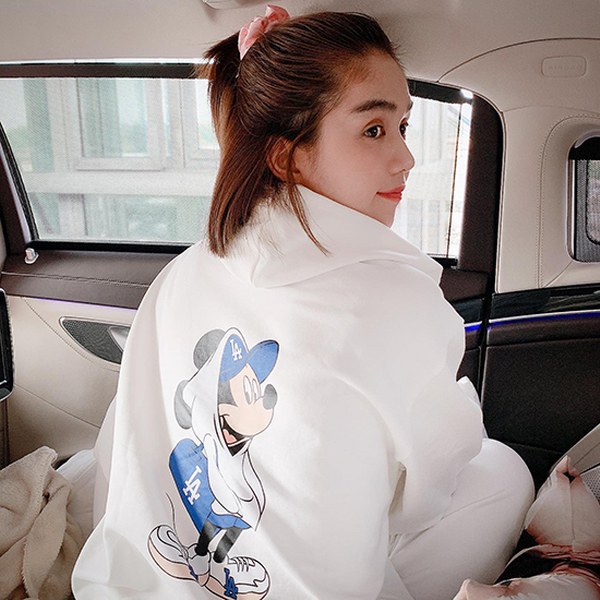 Ngọc Trinh chọn kiểu áo hoodie trắng từ thương hiệu nổi tiếng Hàn Quốc để hòa cùng trào lưu diện đồ in hình chuột trong năm mới.