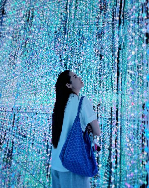 Hôm 31/8, Minh Hằng chia sẻ ảnh đi xem triển lãm với con trai ở TPHCM. Cô chọn áo phông, quần jeans và túi Goyard xanh dương khoảng 2.600 USD (64,6 triệu đồng).