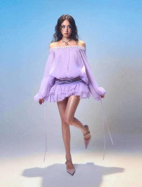 Vừa qua, Hoàng Thùy Linh gây chú ý khi đăng video giới thiệu album Vietnamese Concert trên trang cá nhân, đánh dấu sự tái xuất sau hơn chín tháng vắng bóng. Người đẹp diện áo trễ vai màu tím oải hương, bo gấu, mang phong cách boho.