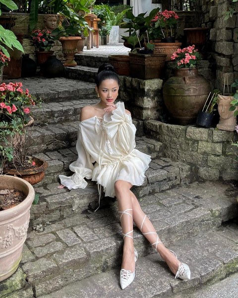 Á hậu Thảo Nhi Lê từng diện mẫu tương tự với túi mini khi đi nghỉ dưỡng tháng 7 (Ảnh: Nhân vật cung cấp)
