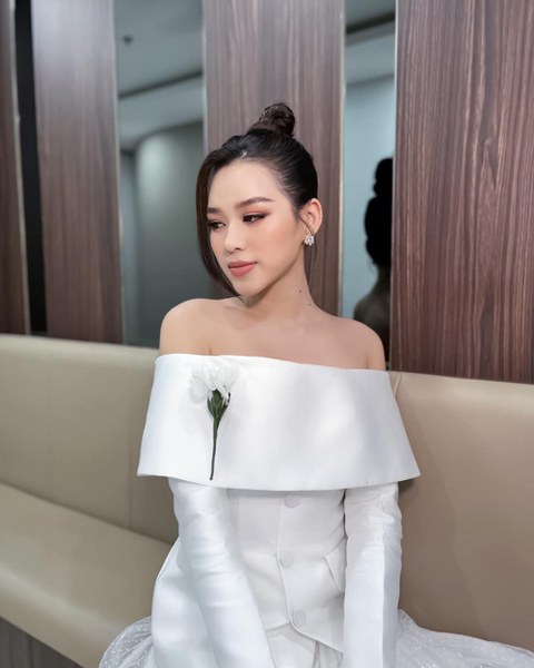 Hoa hậu Đỗ Thị Hà, Lương Thùy Linh, á hậu Mâu Thủy, diễn viên Khả Ngân chọn cách làm tóc và trang điểm khác nhau khi khoe dáng trong mẫu váy thanh lịch.