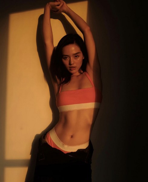 Hoà cùng trào lưu diện underwear của Calvin Klein, ca sĩ Sĩ Thanh điệu đà hơn với mẫu trang phục in hoạ tiết hoa hồng đỏ đi kèm logo độc quyền của thương hiệu.