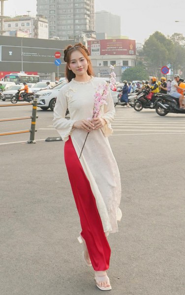 Hoa hậu Ngọc Châu, diễn viên Nhã Phương, ca sĩ Phương Thanh diện áo dài, xuống phố du xuân.