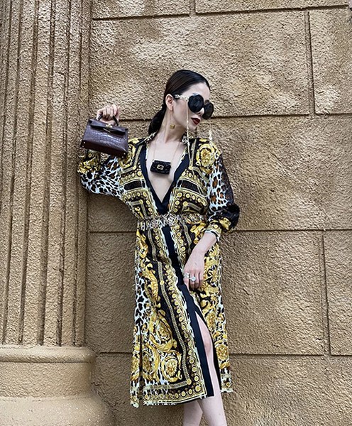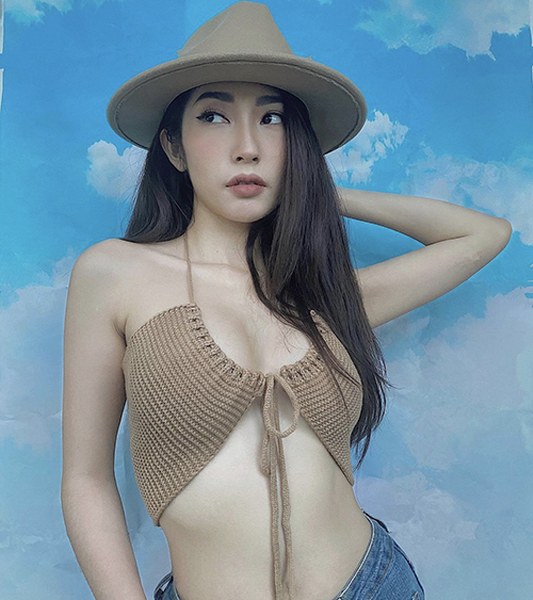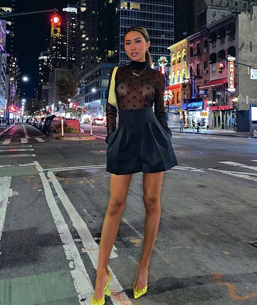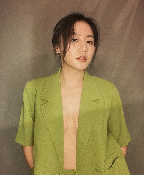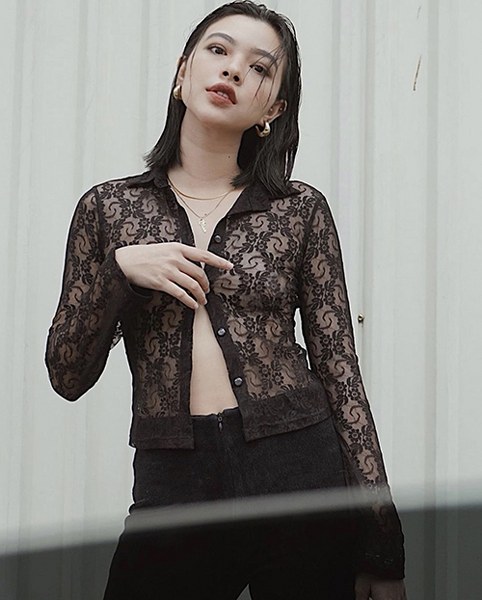 Tú Hảo dùng trang phục ren xuyên thấu để hòa cùng trào lưu mặc áo gài một nút, khoe vòng một hững hờ.