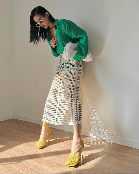 Có ba cách để diện mốt váy lưới xuyên thấu xuống phố, phối cùng áo hai dây dáng dài, mix với sơ mi oversize. Nếu thích thể hiện cá tính, phái đẹp có thể sử dụng nó với quần short ngắn tiệp màu. Fashionista Khánh Linh, Á hậu Hoàng Thùy, người mẫu Thu Anh có những cách mix-match riêng khi sử dụng trang phục hot trend.
