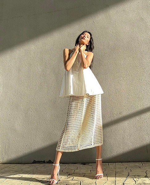 Trang phục móc sợi cotton là xu hướng được nhiều nhà mốt thế giới lăng-xê vào đầu mùa hè 2021. Local brand trong nước cũng nhanh chóng bắt kịp trào lưu này với kiểu chân váy ấn tượng. Giá tham khảo cho chiếc váy đan móc thủ công bằng sợi cotton khoảng 2.850 ngàn đồng.