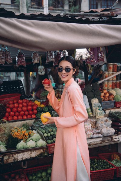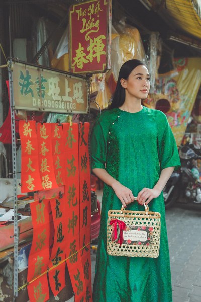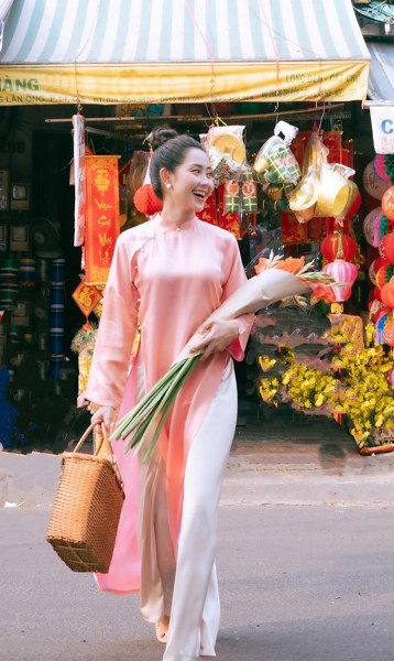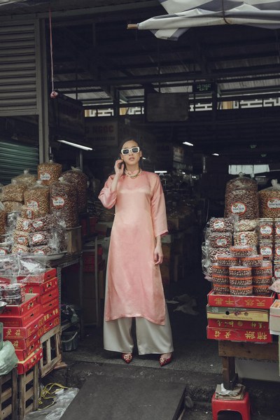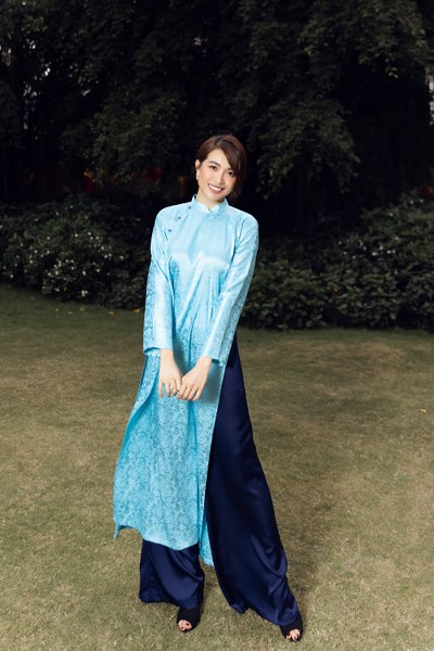 Áo dài không kén dáng, lấy cảm hứng từ áo ngũ thân mà Tăng Thanh Hà lăng-xê năm ngoái vẫn được nhiều sao Việt ưa chuộng.