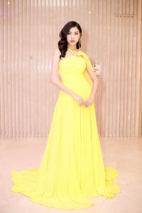 Không đóng khung trong hình ảnh thanh lịch, sang trọng, Á hậu Quốc tế Thúy Vân toát lên vẻ gợi cảm, cá tính với bộ đầm màu vàng chanh. Cô trở thành tâm điểm tại sự kiện Diễn đàn nữ lãnh đạo quốc tế 2018 hồi tháng 3