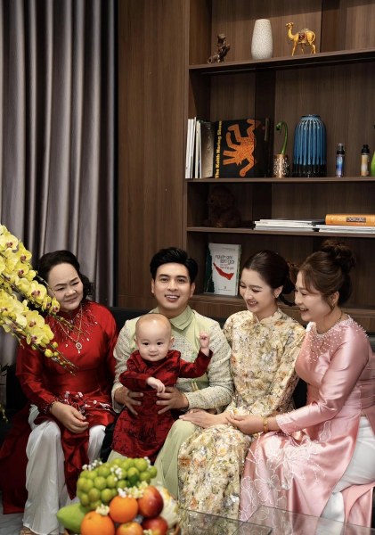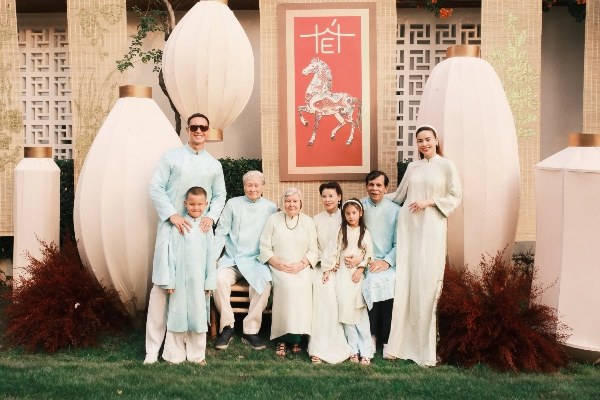 Hồ Ngọc Hà, Kim Lý cùng con song sinh quây quần đón xuân bên bố mẹ hai bên gia đình.