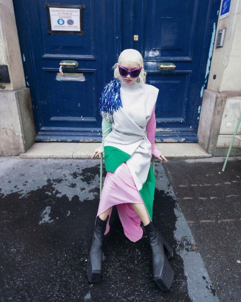 Tham dự Tuần lễ thời trang Paris cuối tháng 9, Châu Bùi chọn thiết kế cao 15 cm, giúp cô nâng chiều cao lên 1,75 m khi diện bộ váy áo nhiều lớp.