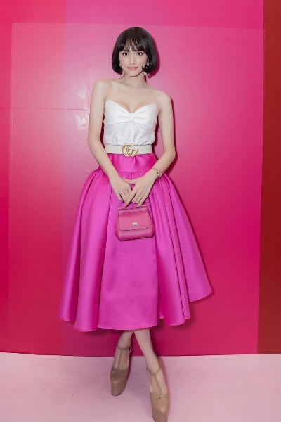 Ninh Dương Lan Ngọc ghi điểm với đôi giày cao 20 cm trong bộ đầm công chúa màu hồng fuchsia.