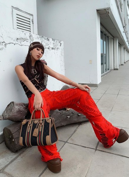 Khi đi nghỉ dưỡng, Quỳnh Anh Shyn gây chú ý với đôi giày đắt đỏ của Hermes.