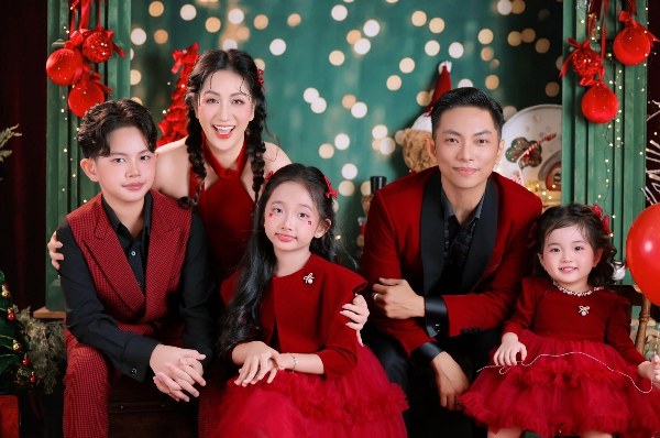 Vợ chồng Khánh Thi - Phan Hiển theo đạo Công giáo nên luôn háo hức đón chờ dịp lễ lớn. Năm nay, họ cùng ba con diện trang phục tông đỏ, ghi lại những khoảnh khắc kỷ niệm. Kiện tướng dancesport mong một mùa Giáng sinh ấm áp, bình an đến với mọi người.