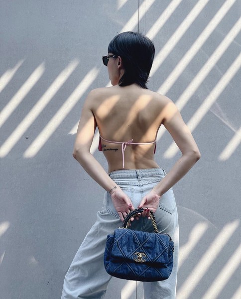 Ca sĩ Tóc Tiên phá cách với việc sử dụng áo khoe trọn lưng trần khi mix đồ street style mùa hè.