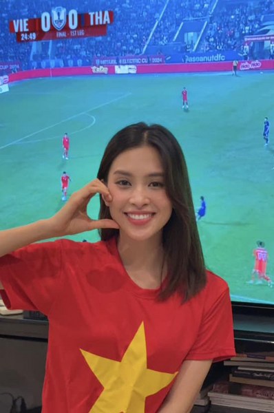 Hoa hậu Tiểu Vy nói cô sung sướng khi đội tuyển Việt Nam thắng Thái Lan trên sân nhà sau 27 năm, với tỷ số 2 -1.