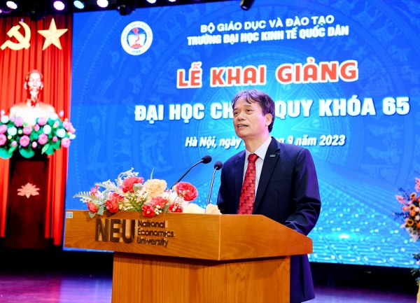 GS.TS Phạm Hồng Chương, Hiệu trưởng Trường Đại học Kinh tế Quốc dân phát biểu trong Lễ Khai giảng Đại học Chính quy Khóa 65 năm 2023