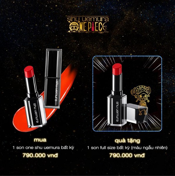 Tặng 1 son shu uemura khi mua 1 son shu uemura trị giá 790.000 VND (tặng son màu ngẫu nhiên).