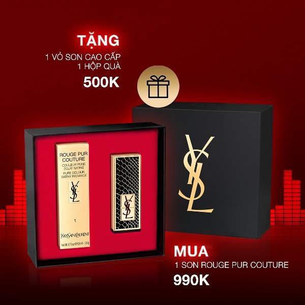 Tặng 1 phụ kiện nắp son Rouge Pur Couture kèm hộp sang trọng trị giá 500.000 VND khi mua 1 thỏi son Rouge Pure Couture trị giá 990.000 VND bất kỳ.