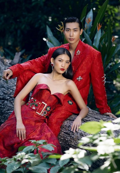 Siêu mẫu Hữu Long, người mẫu Tú Anh tôn vinh vẻ đẹp tình yêu đôi lứa qua các thiết kế mùa xuân.
